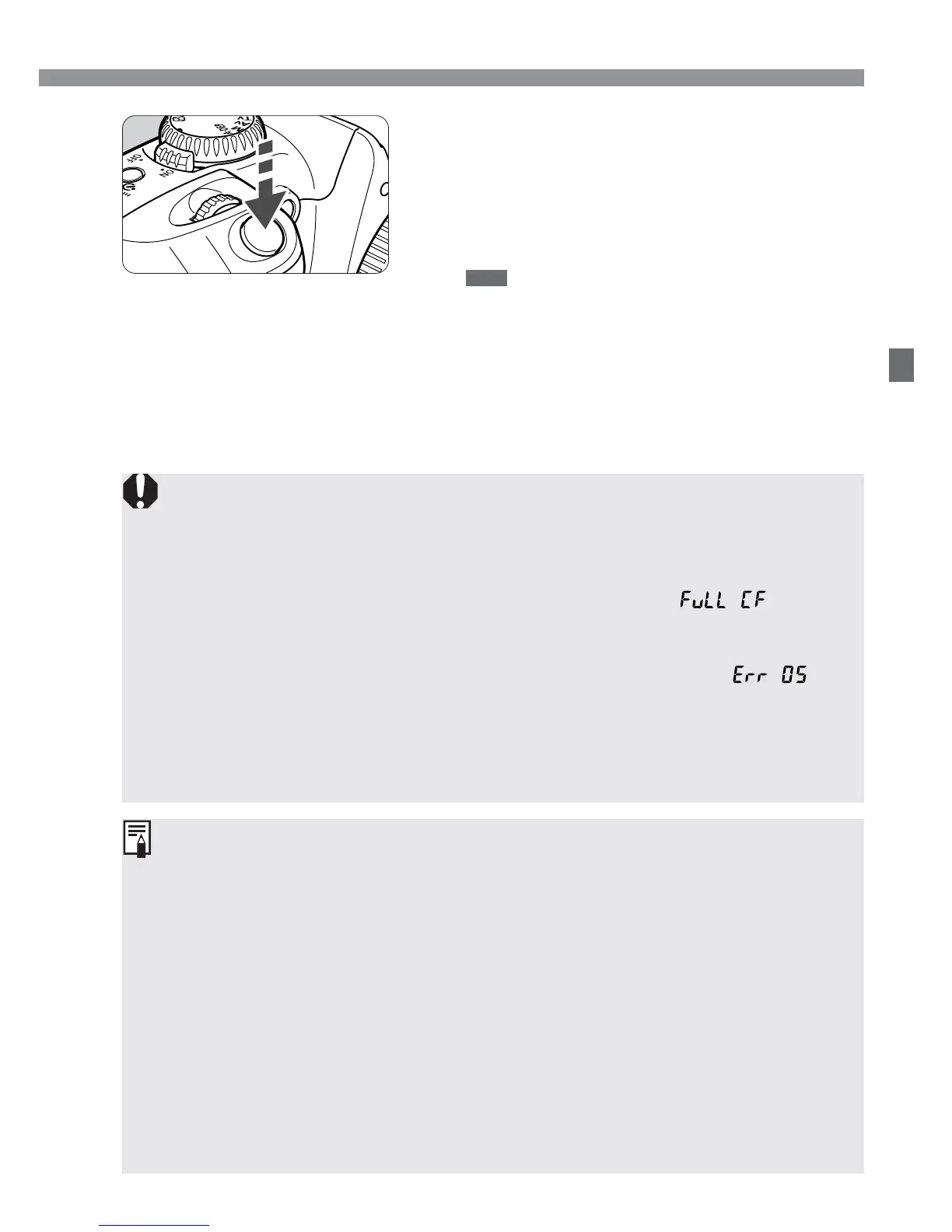 appear on the LCD panel and shooting will be disabled. Replace the CF
