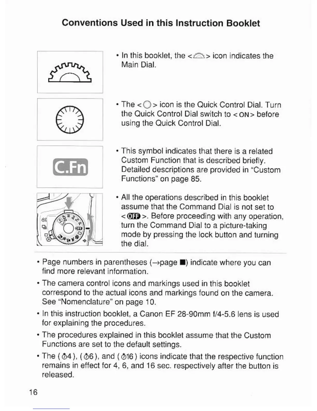 Canon EOS EOS 7 - Instruction Booklet Conventions; Understanding Icons and References; Custom Function Icon Meaning; Time-Delayed Function Icons