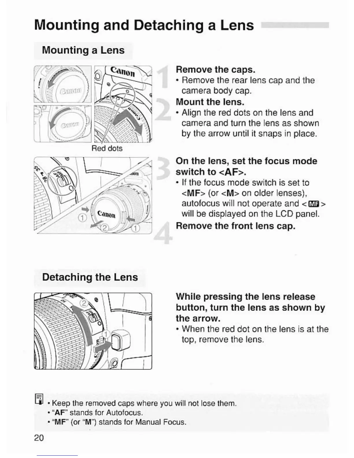 Canon EOS EOS 7 - Mounting and Detaching a Lens