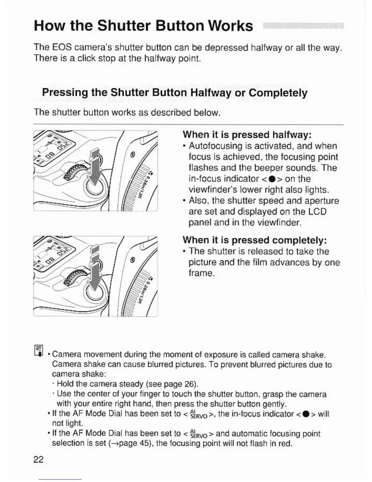 Canon EOS EOS 7 - Shutter Button Operation