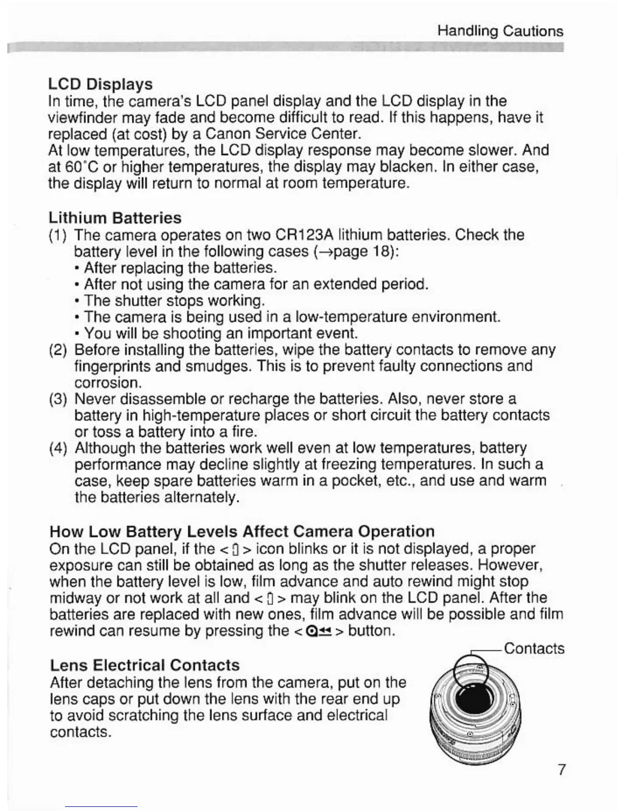 Canon EOS EOS 7 - LCD Displays; Lithium Batteries; Lens Electrical Contacts
