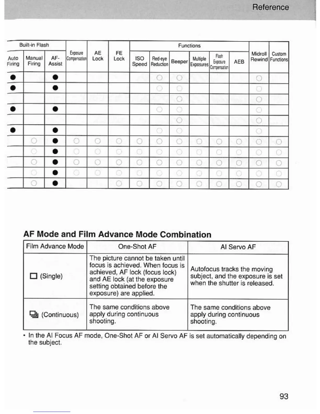 Canon EOS EOS 7 - AF Mode and Film Advance Combination
