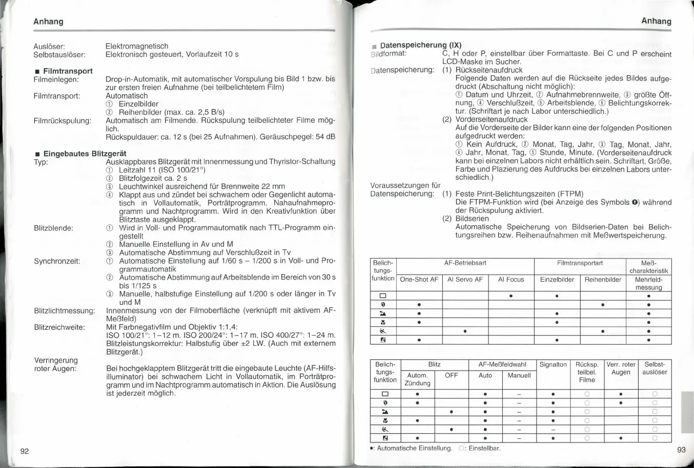 Blitzlichtmessung: Innenmessung von der Filmoberfläche (verknüpft mit aktivem AF-