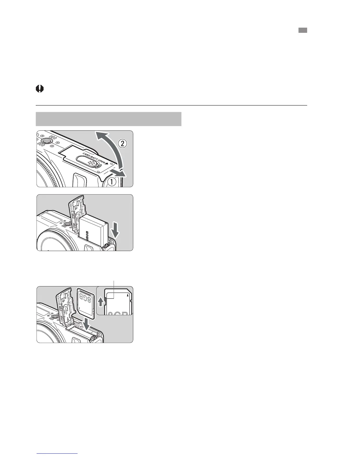 Load a fully charged Battery Pack LP-E12 into the camera. The card (sold