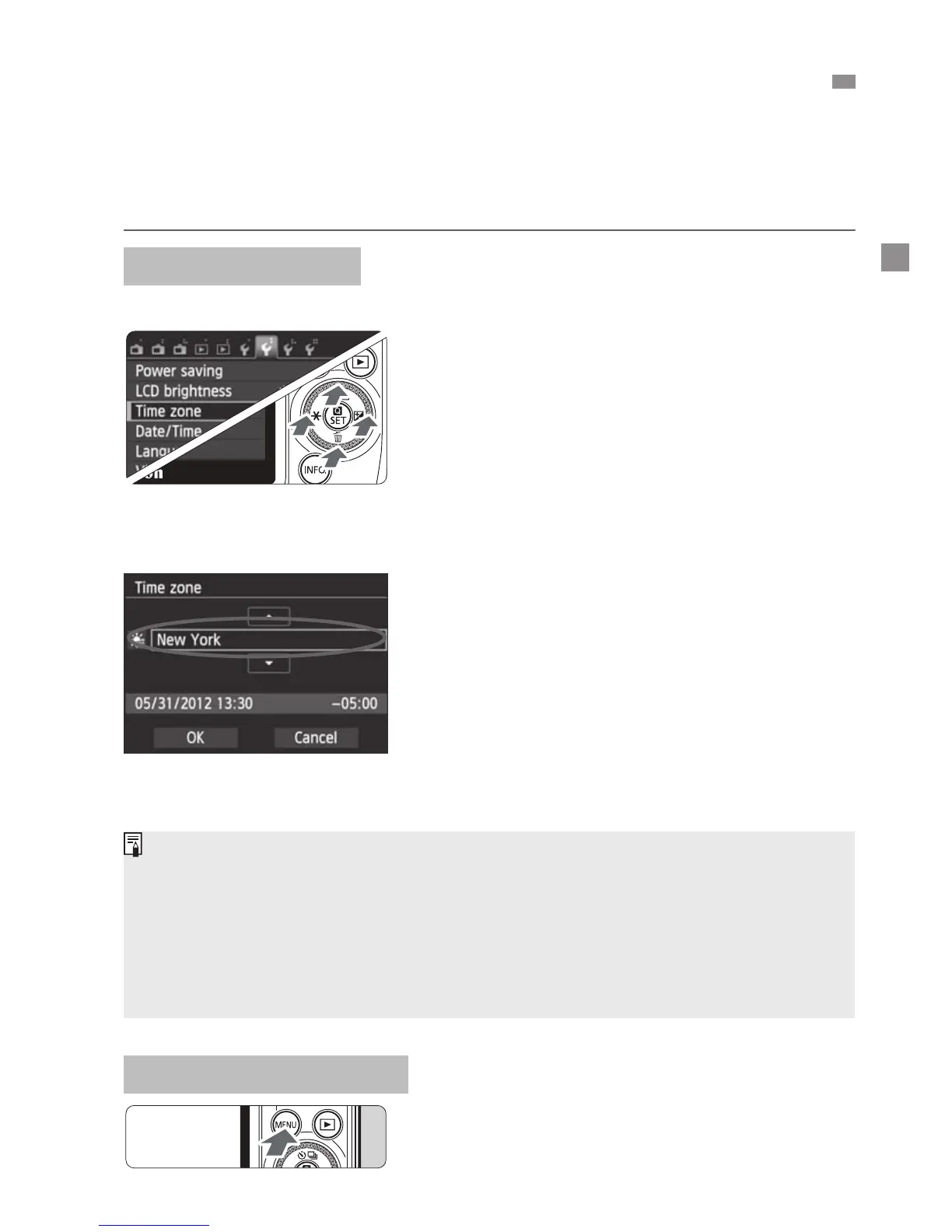 When you turn on the camera for the first time, the Time zone and Date/Time