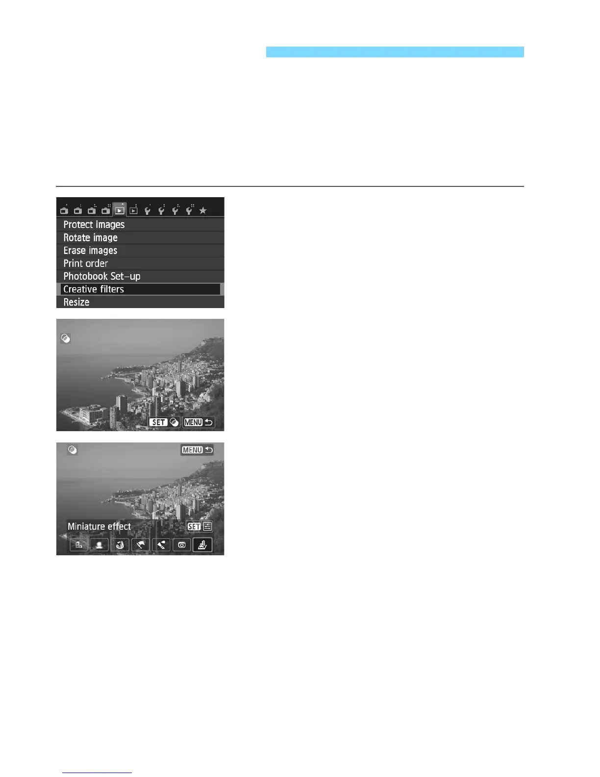 You can apply Creative filters even during image playback. An image