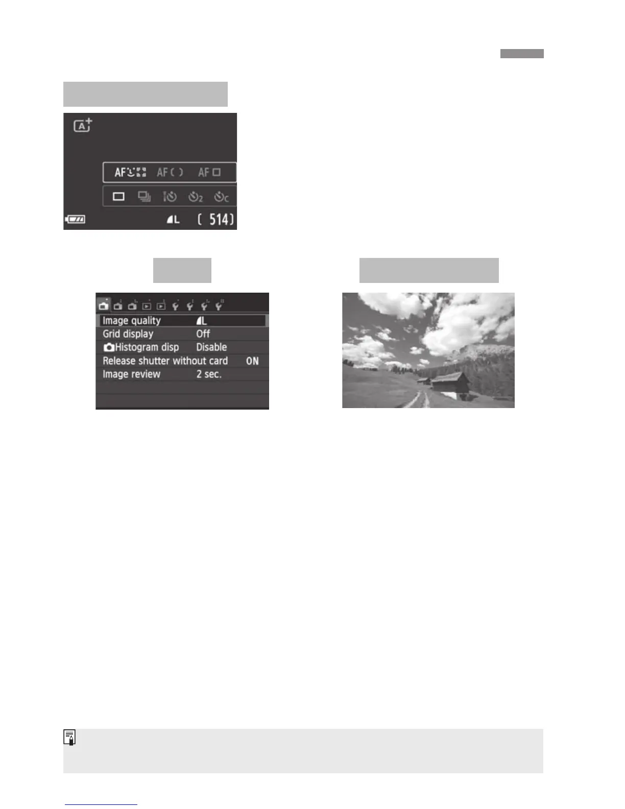 Live View screen and B Quick Control