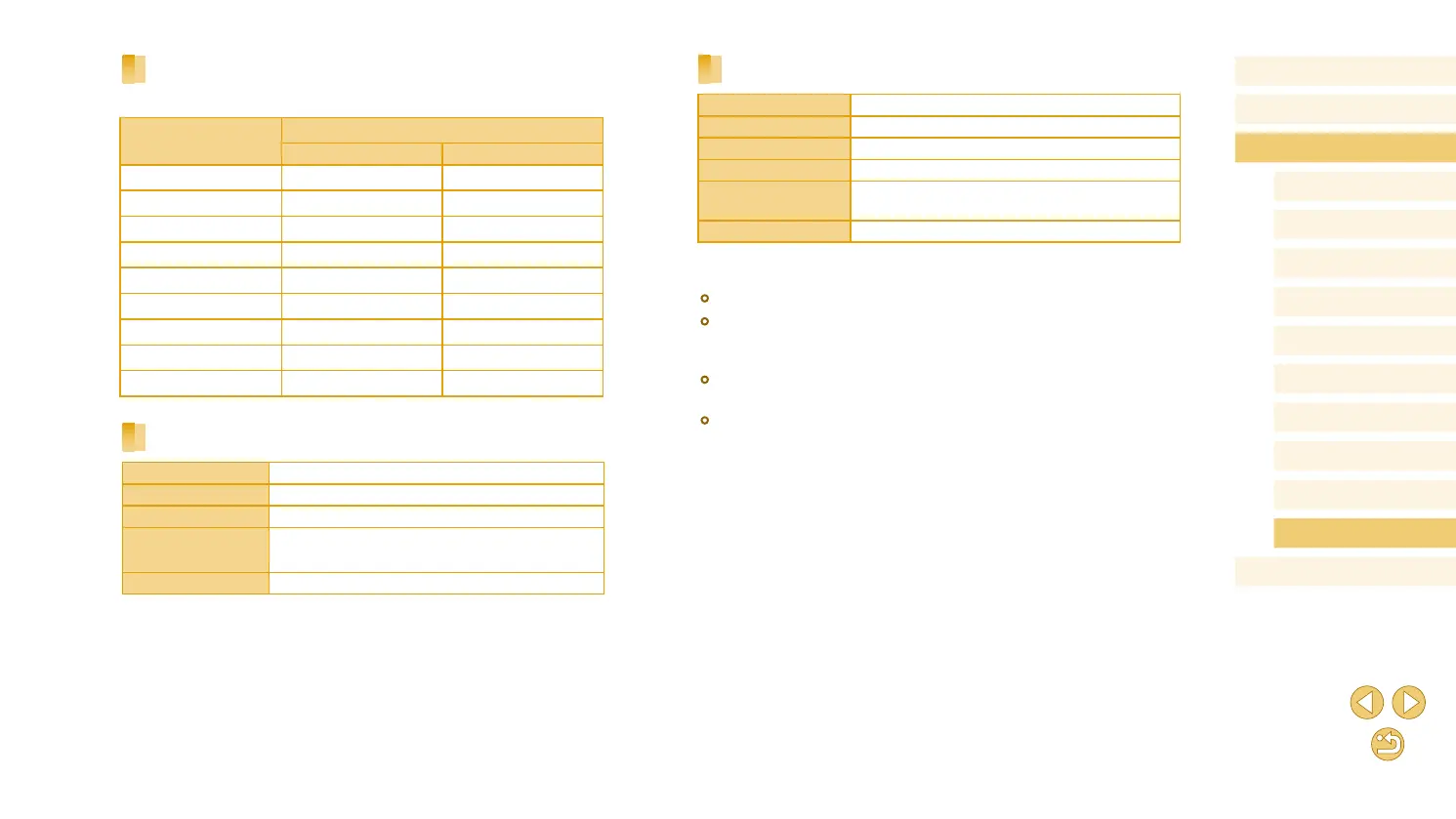 ● Number of possible shots, dimensions, and weight (for camera body