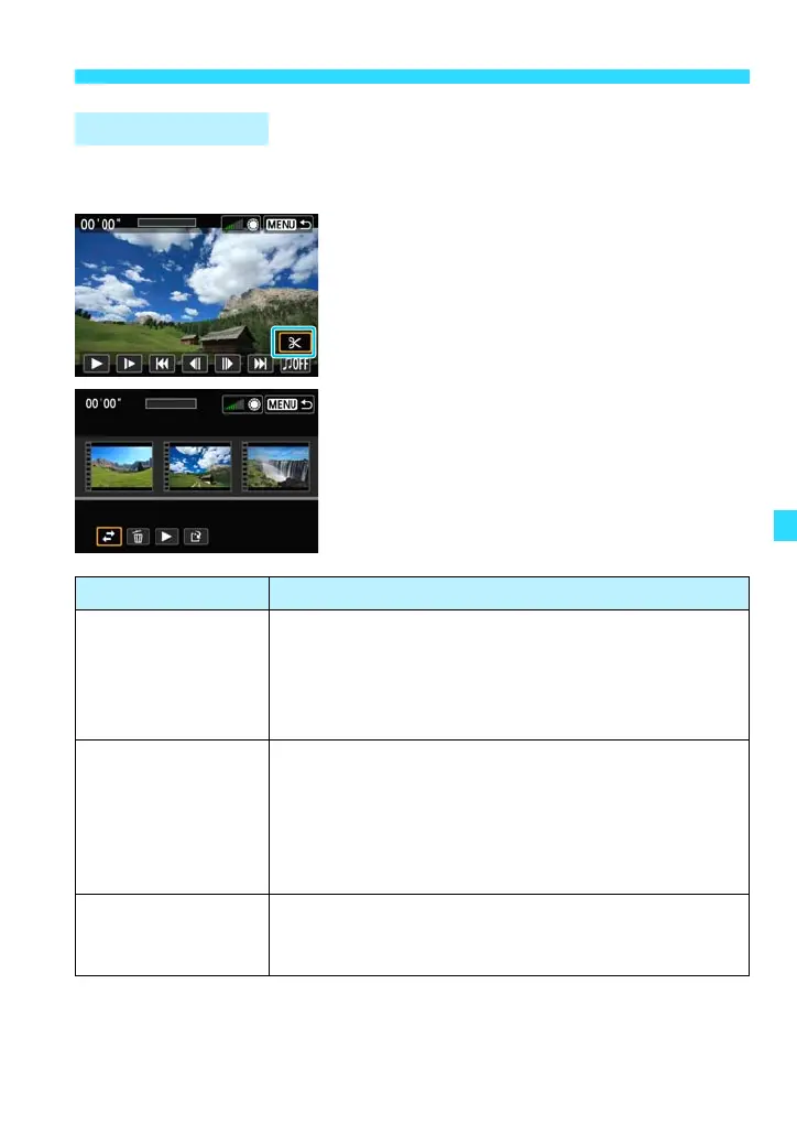 After shooting, you can rearrange, delete, or play back the video snapshots in