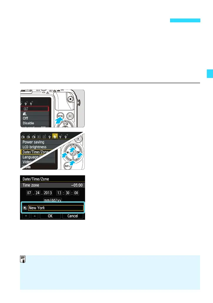 been reset, the date/time/zone setting screen will appear. Follow the steps