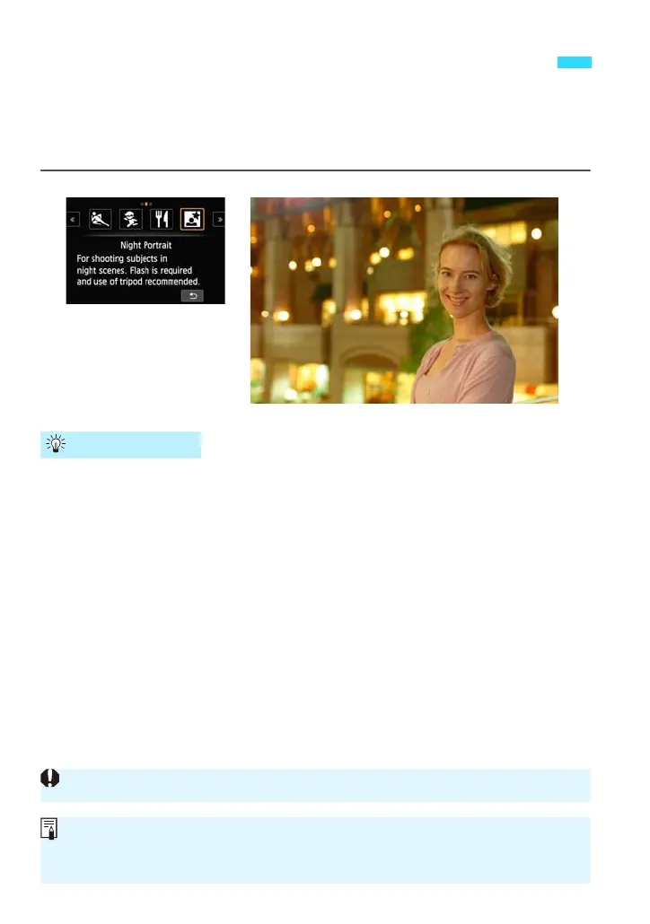 background, use the <6> (Night Portrait) mode. A flash is required for