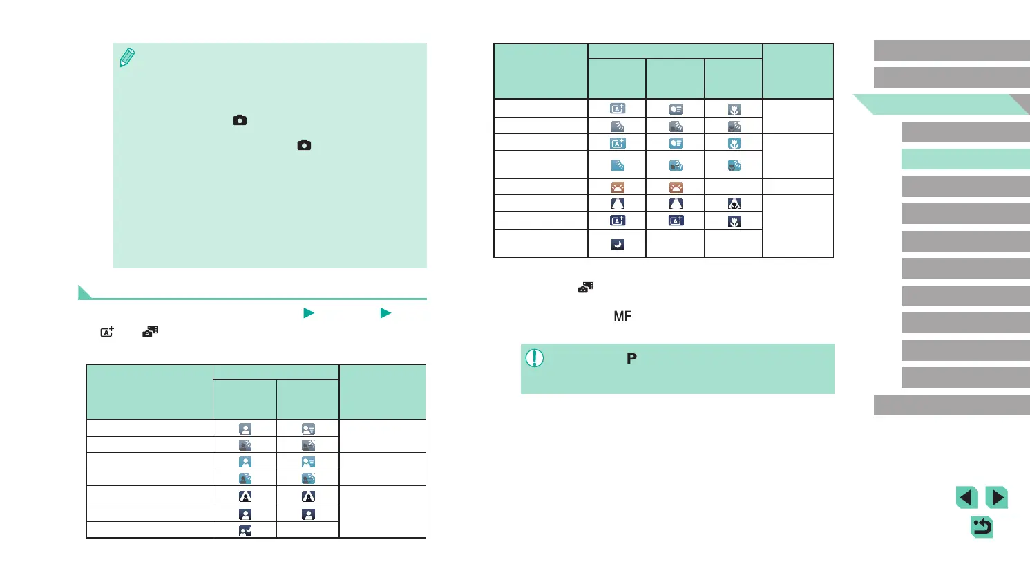 In [ ] and [ ] modes, shooting scenes determined by the camera