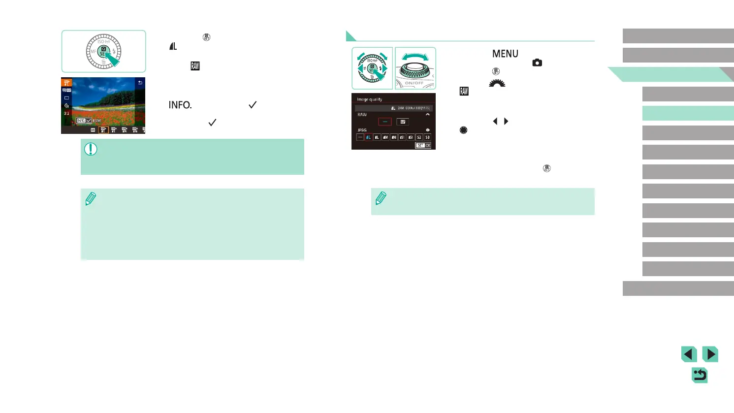 ● You cannot set both the [RAW] and [JPEG] image setting to [–] at