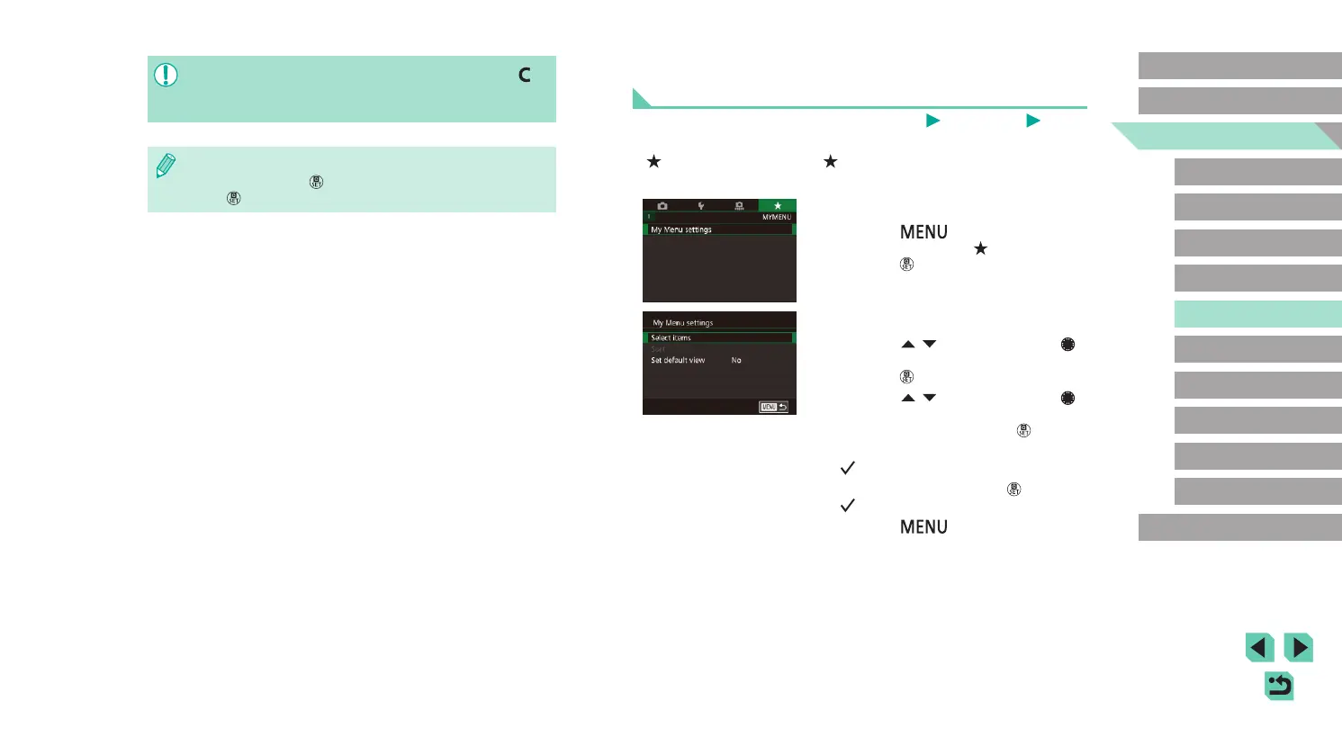 ● To edit saved settings (except their shooting mode), choose [ ],