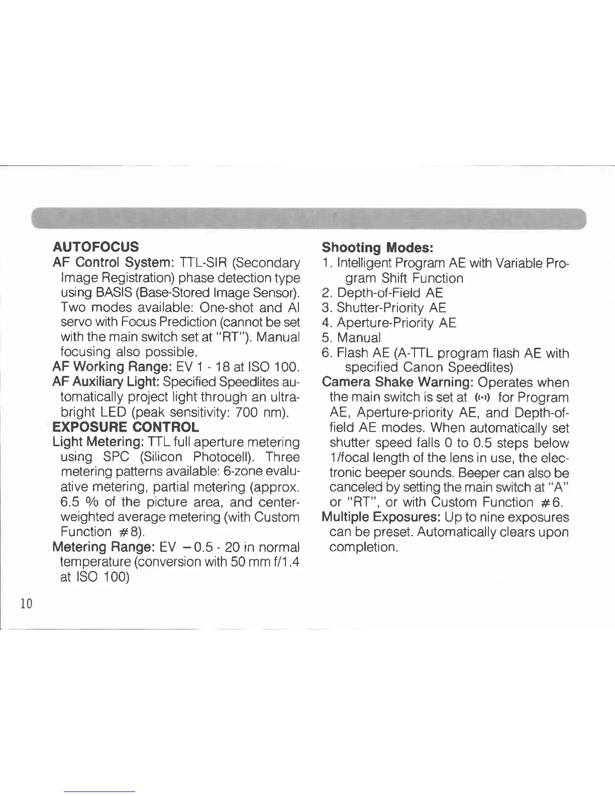 Canon EOS RT - Autofocus; Exposure Control; Shooting Modes
