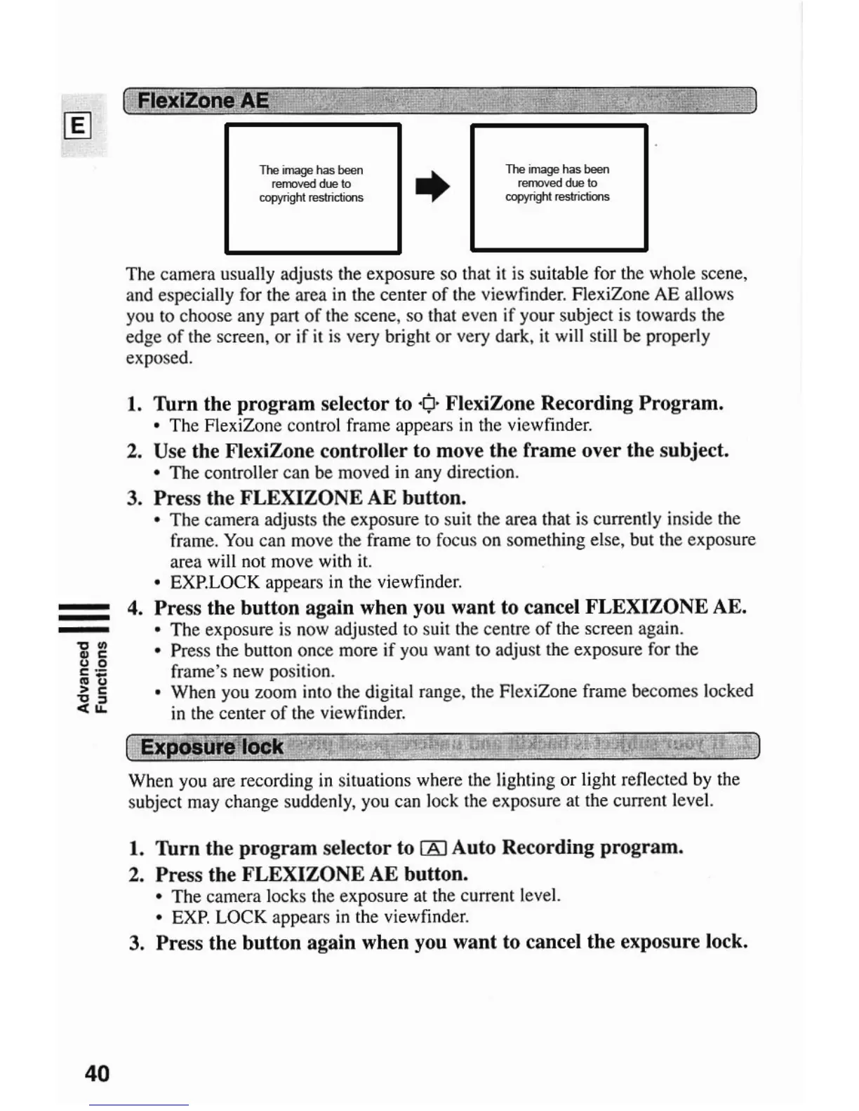 Canon ES290 - Exposure Adjustment Modes; FlexiZone AE Exposure; Exposure Lock Function