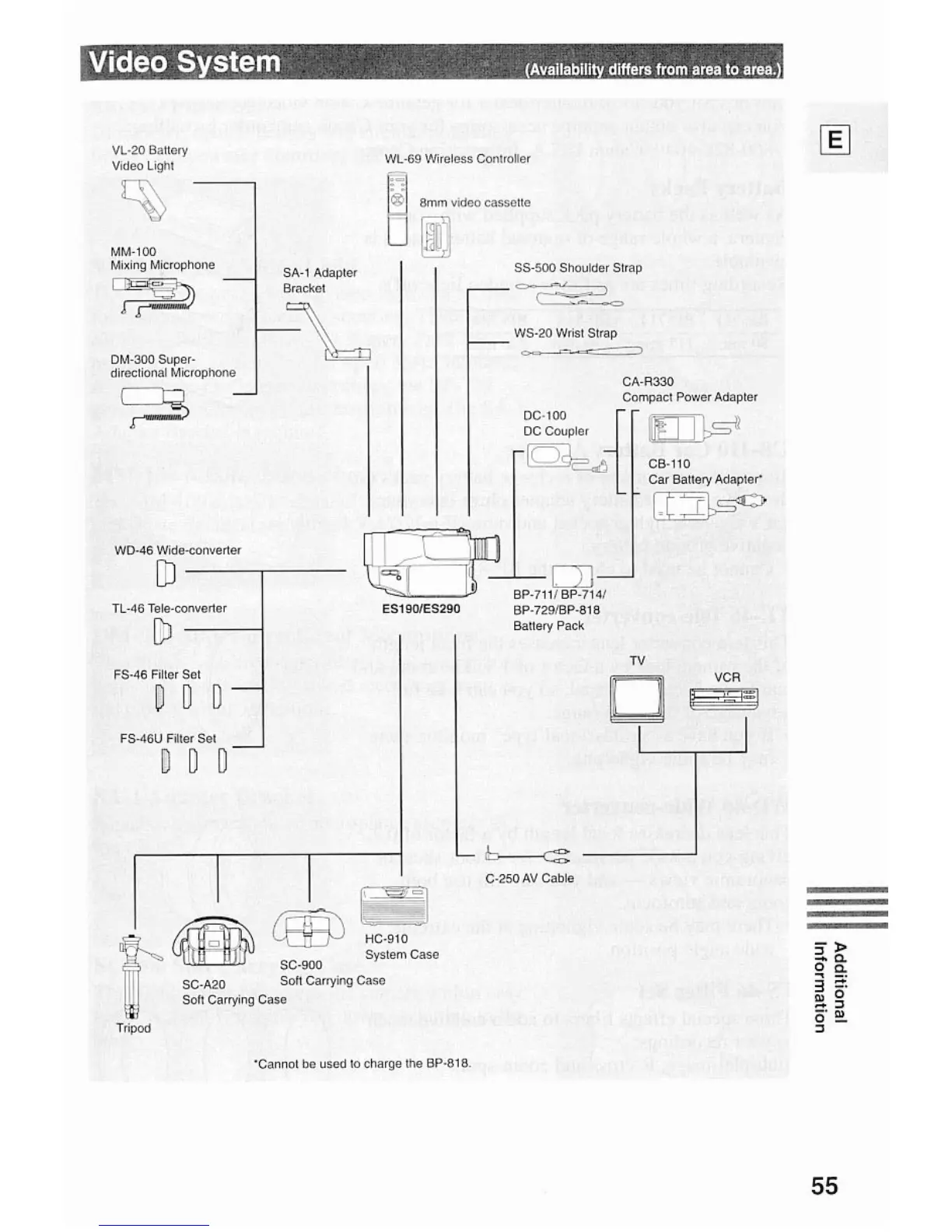 Canon ES290 - Optional Accessories; Optional Batteries; CB-110 Car Battery Adapter; TL-46 Tele-converter Lens