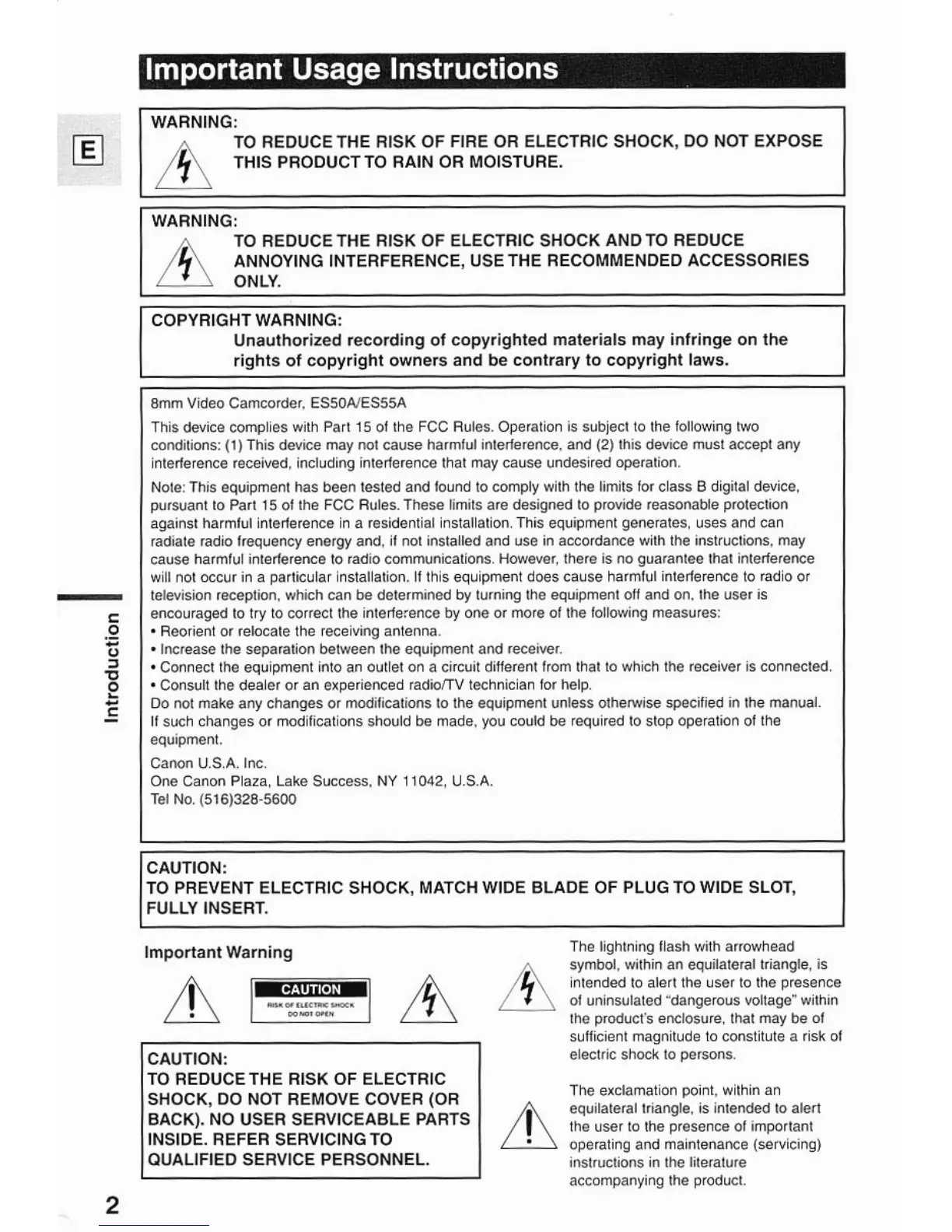 Canon ES50 - Important Usage Instructions