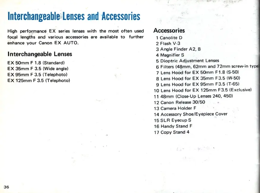 Canon EX AUTO - Interchangeable Lenses and Accessories