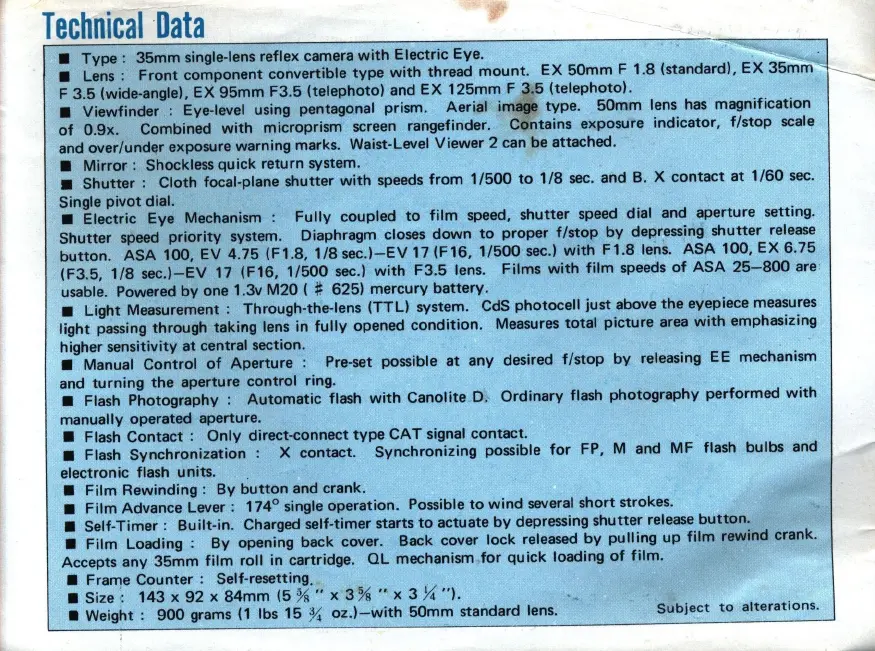 0.9x. Combined with microprism screen rangefinder. COntains exposure indicator, flstop scale