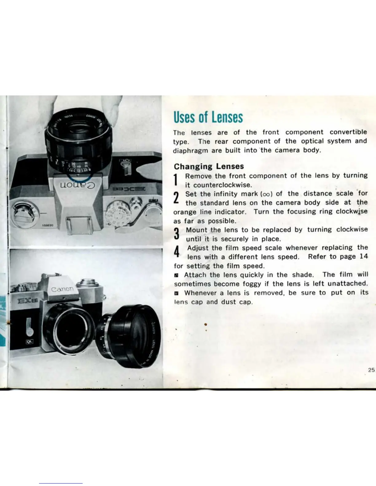 Canon EX EE - Uses of Lenses; Changing Lenses