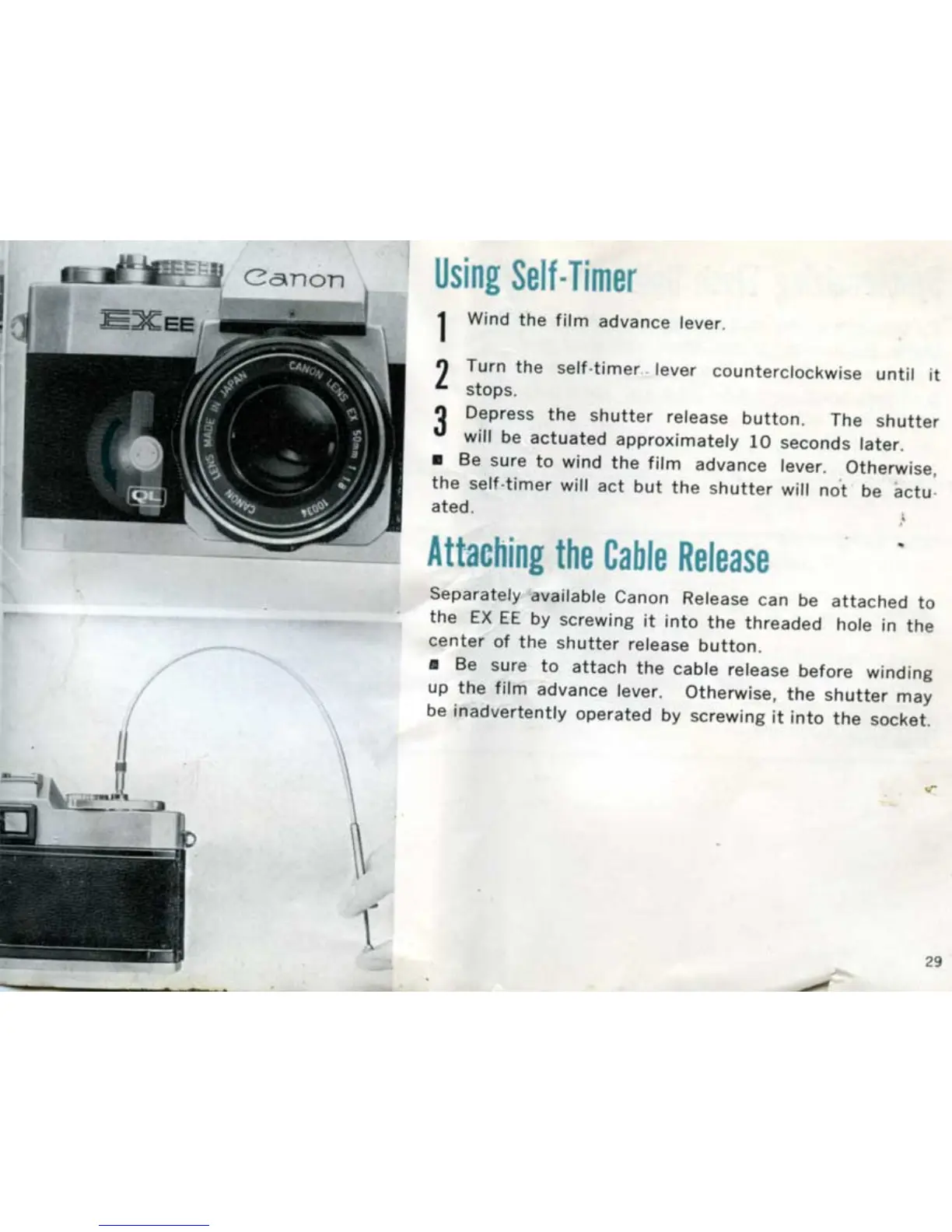 Canon EX EE - Using Self-Timer; Attaching the Cable Releawe