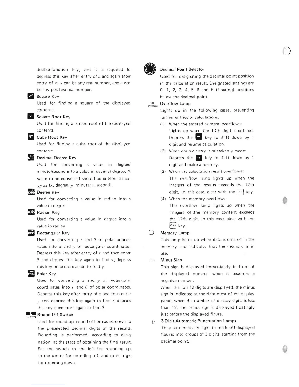 Canon F-10 - Advanced Mathematical and Conversion Keys; Display and Indicator Features