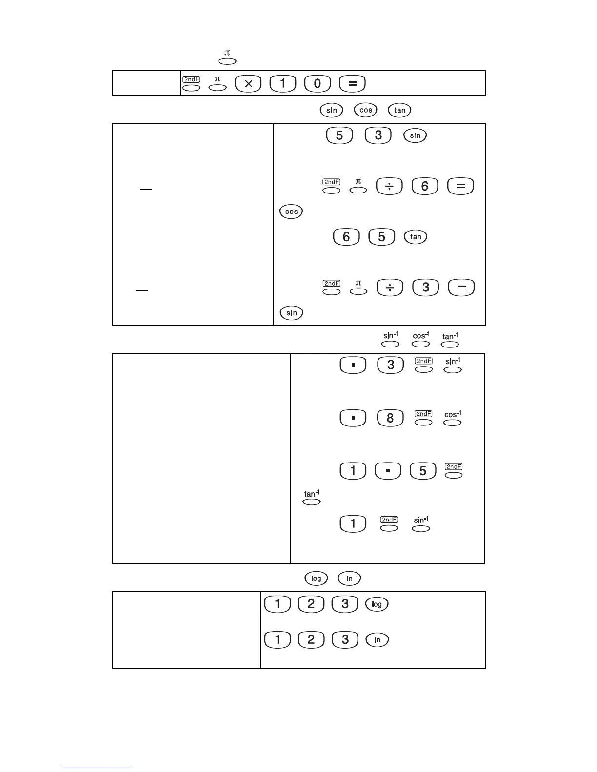 Canon F-604 - BASIC FUNCTION CALCULATIONS; Pi, Trigonometric, and Logarithmic Functions