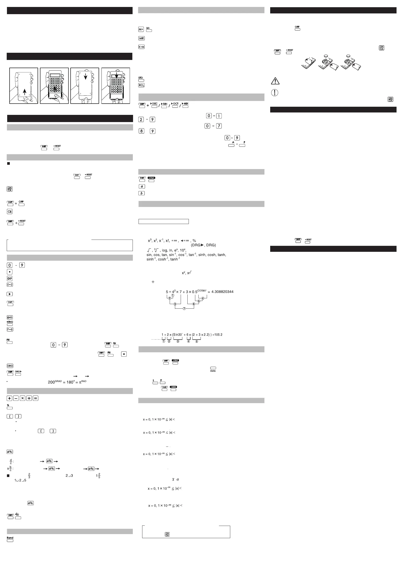 • Cette calculatrice contient des composants de précision comme des puces