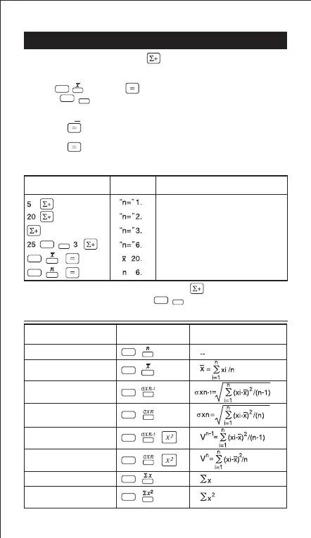2) After finishing data entries, press a statistical calculation key