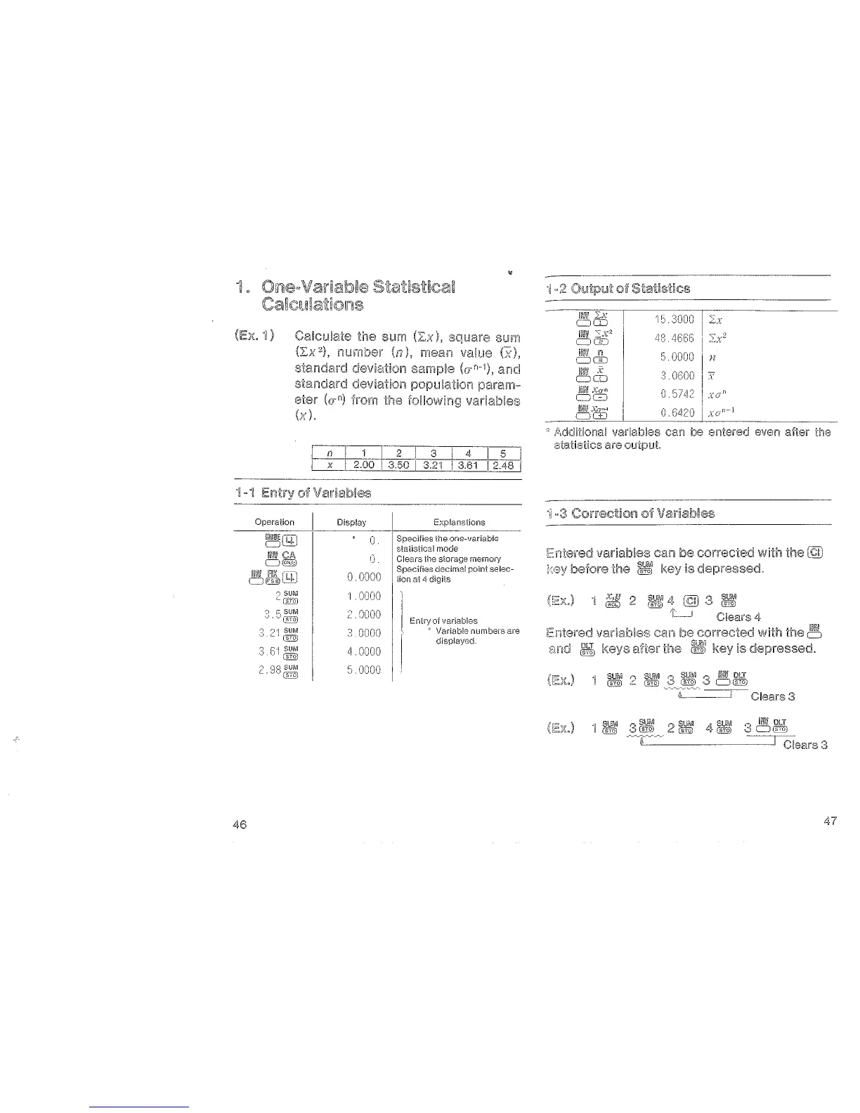 Canon F-73 - One-Variable Statistical Calculations; Output of Statistics; Entry of Variables