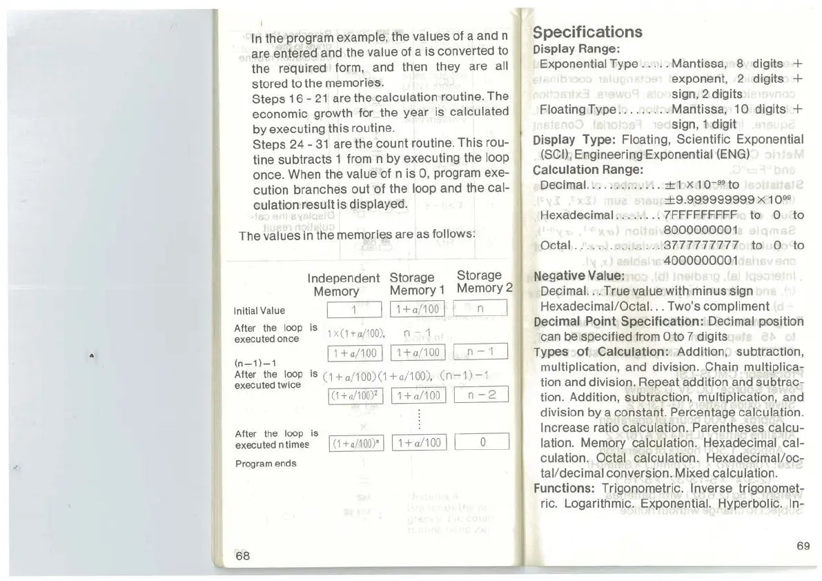 lation. Memory calculation. Hexadecimal cal-