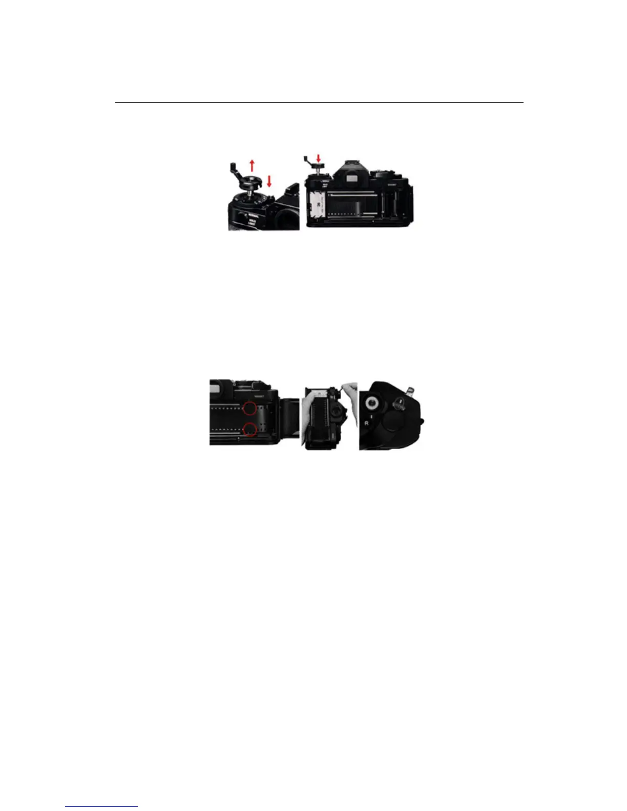 NEVER remove the camera’s rewind coupler cover from the baseplate when film