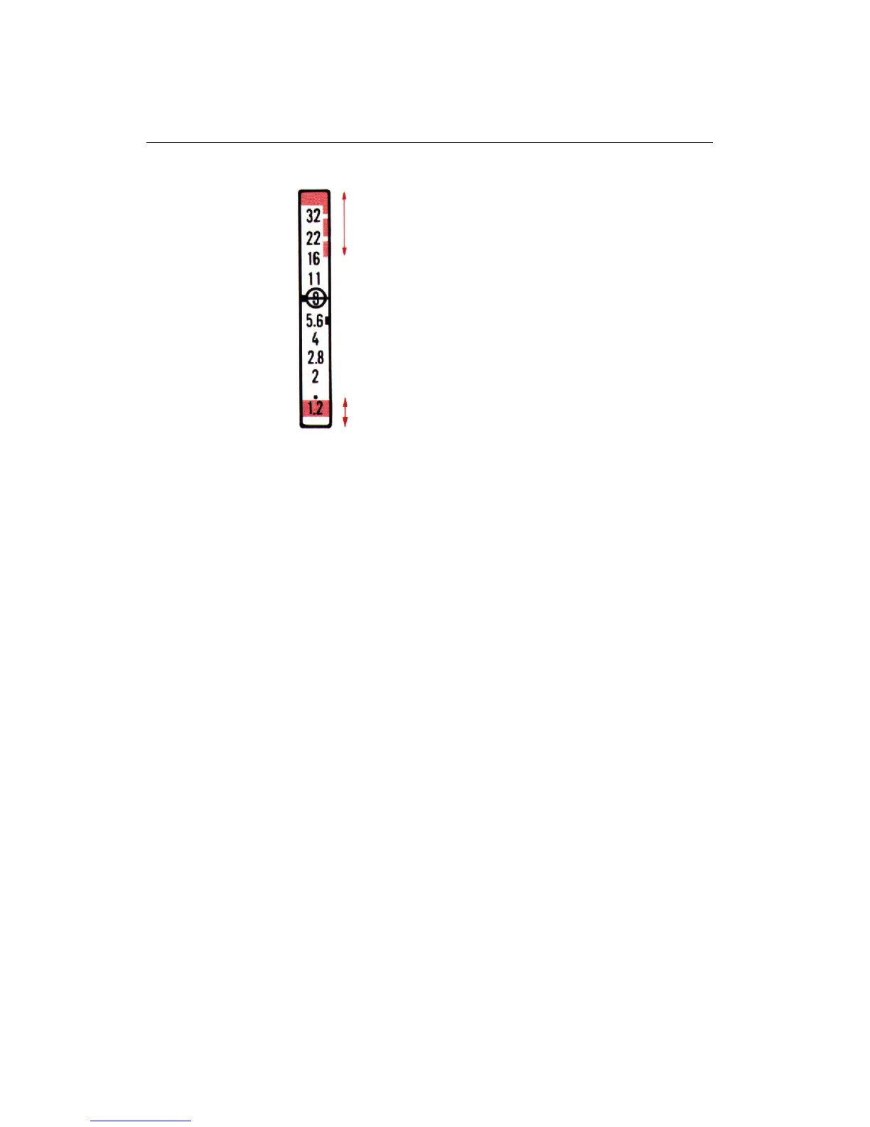 aperture. If, for example, the meter needle points to the red zone between f/16 and