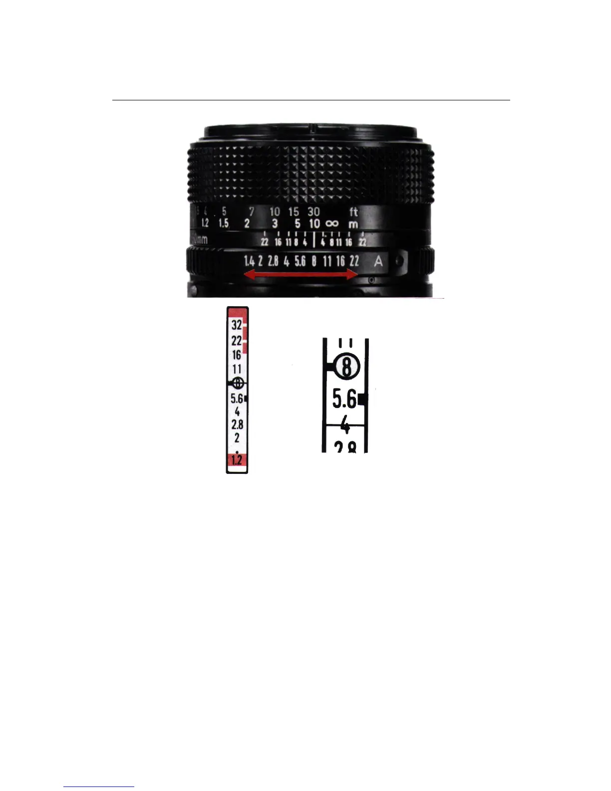 one-half f/stop increments simply by turning the aperture ring to a larger or smaller