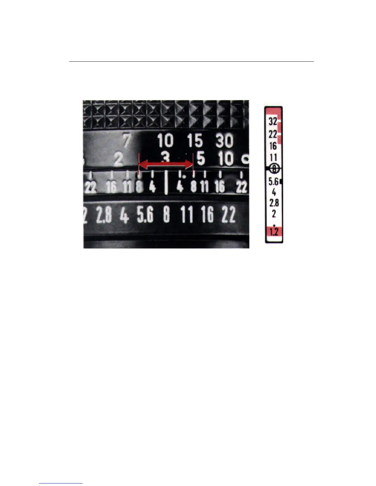 on the lens. This is a scale of f/stops rep eated on each side of the distance index.