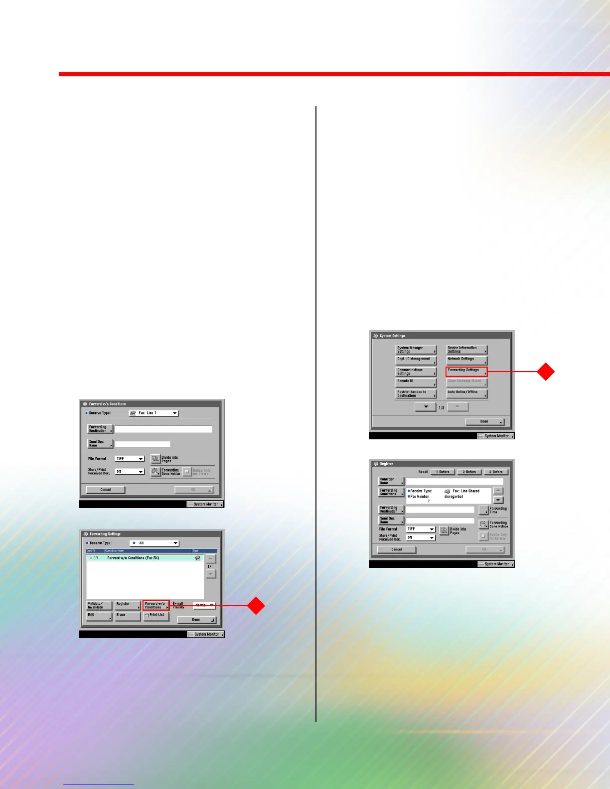 7. Press [Forwarding Conditions]. Select type(s) of condition(s).
