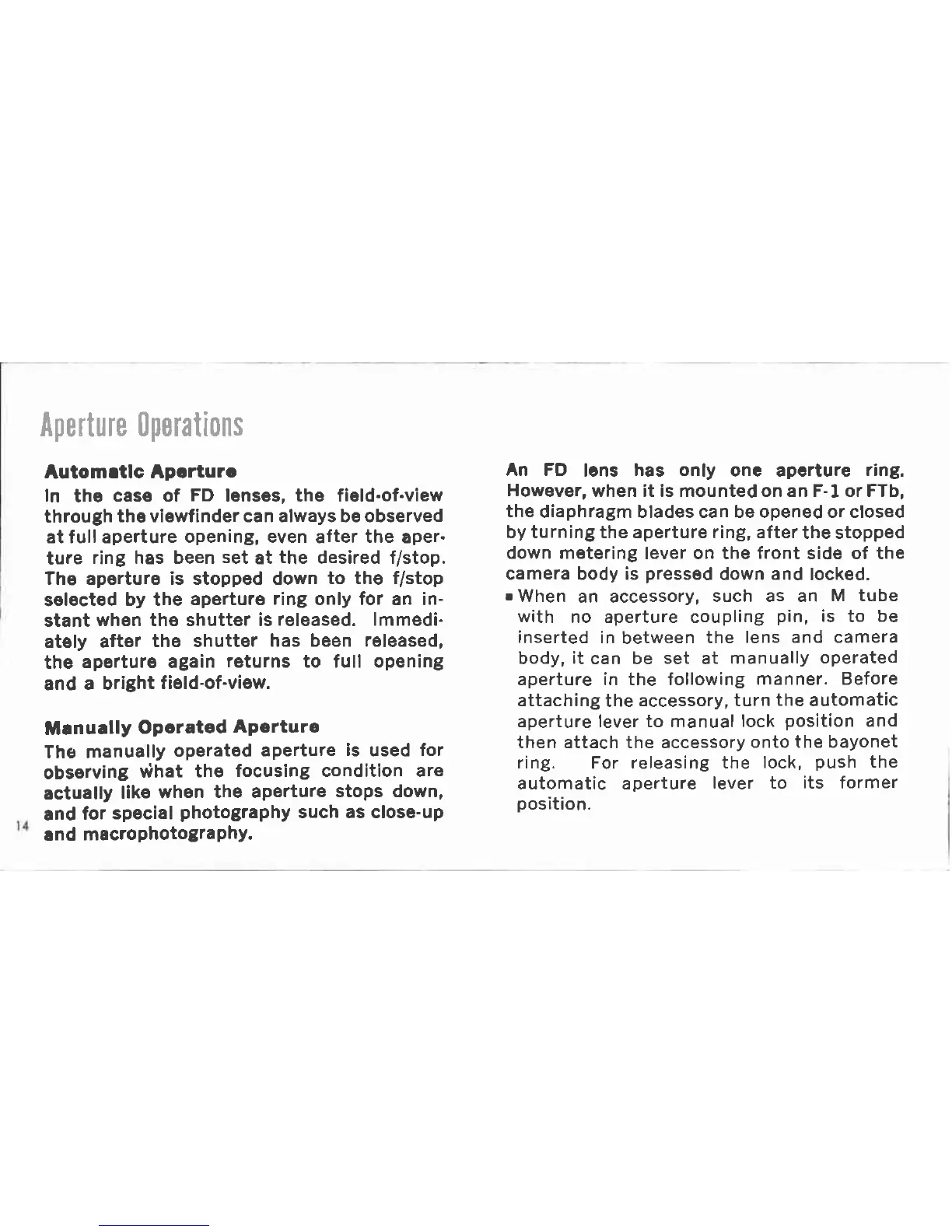 Canon FD - Aperture Operation Modes; Automatic Aperture Mode; Manual Aperture Operation