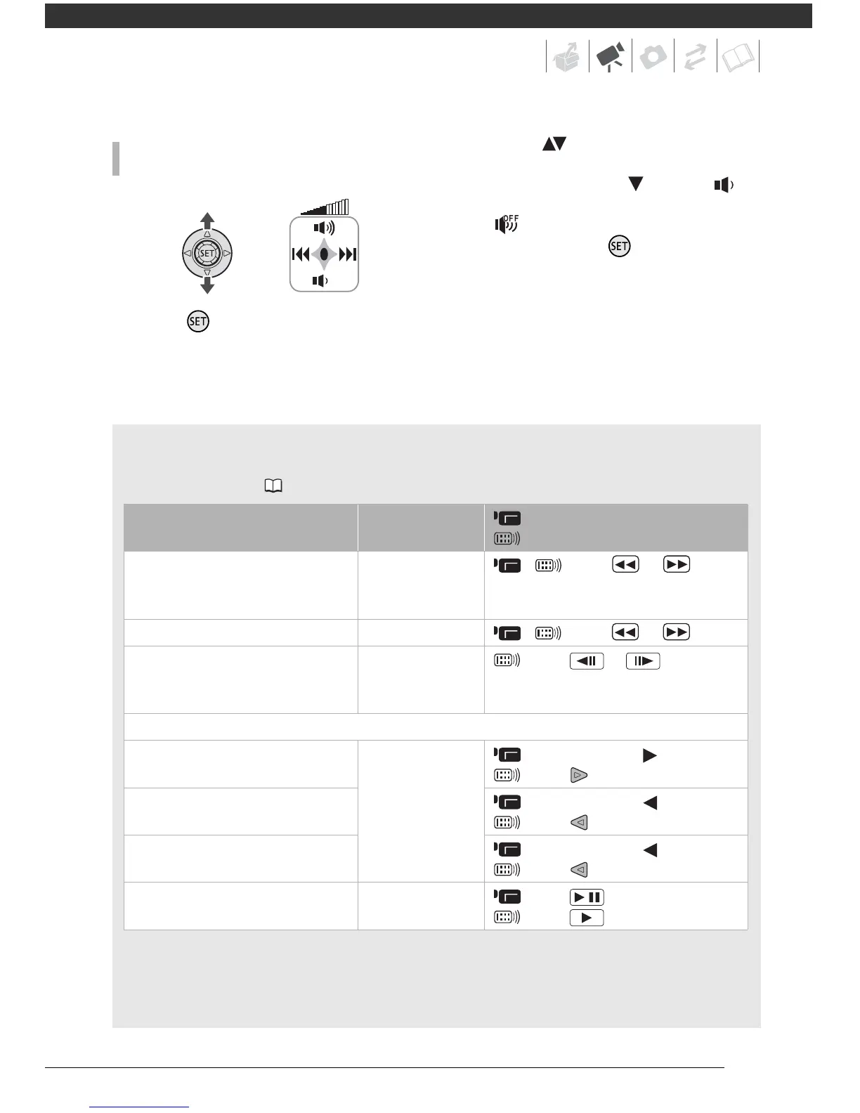 Frame-by-frame playback Playback pause : Press or to reverse/