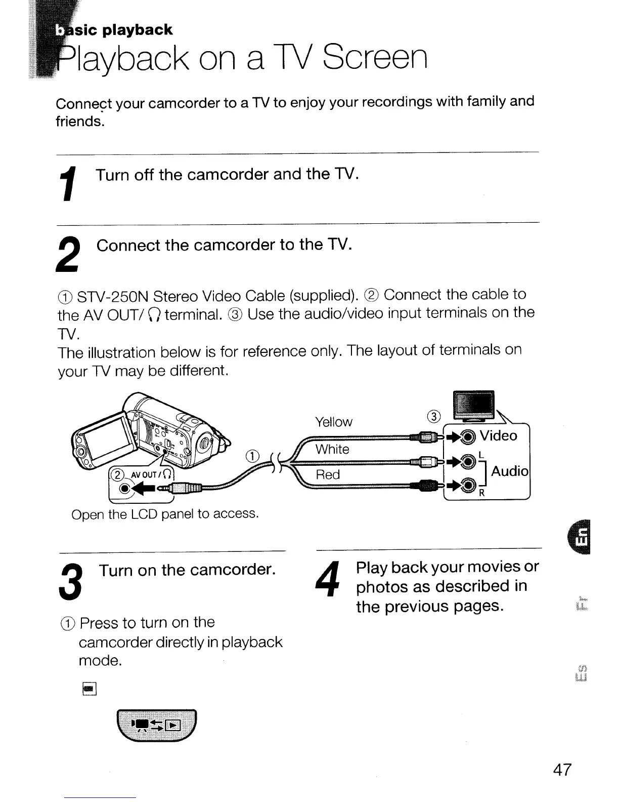STV-250N Stereo Video Cable (supplied). ® Connect the cable to