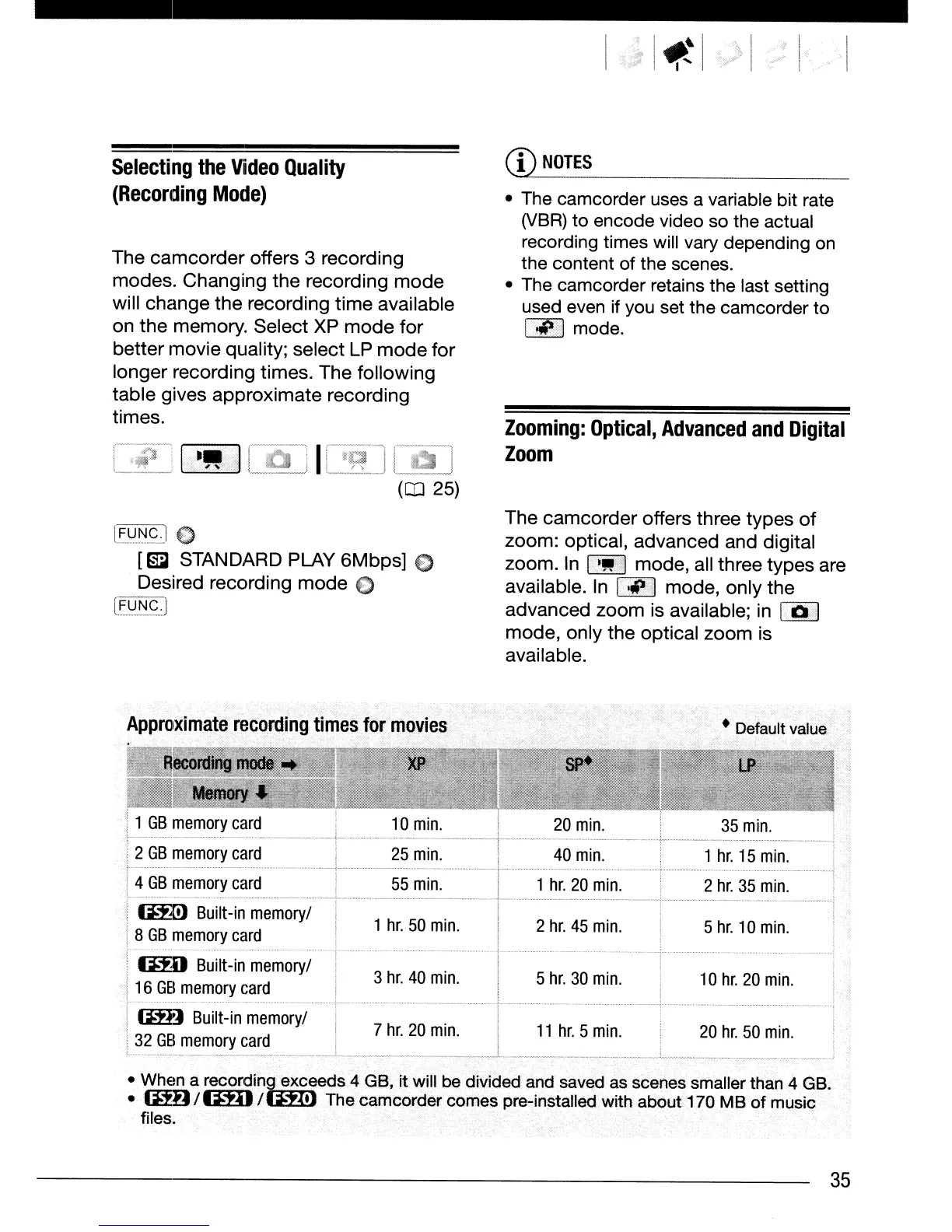 • The camcorder uses a variable bit rate