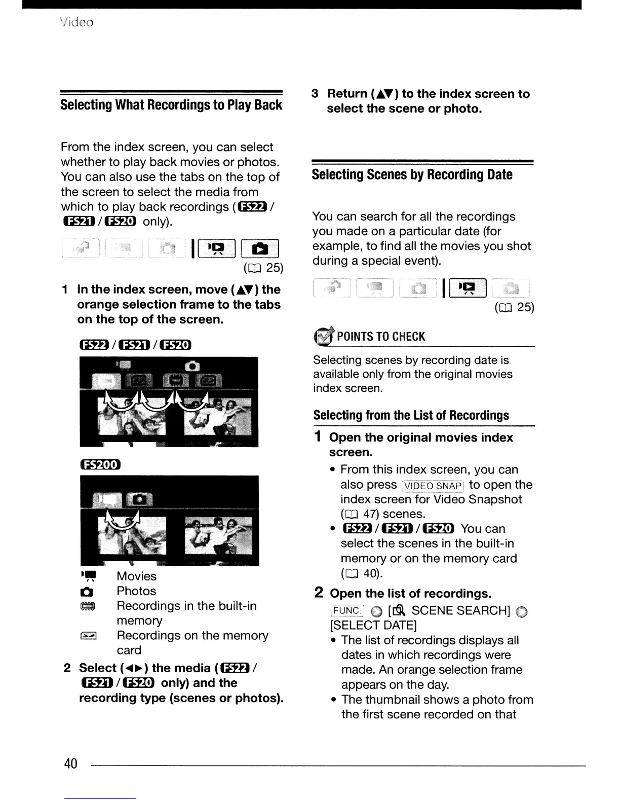 Selecting scenes by recording date is