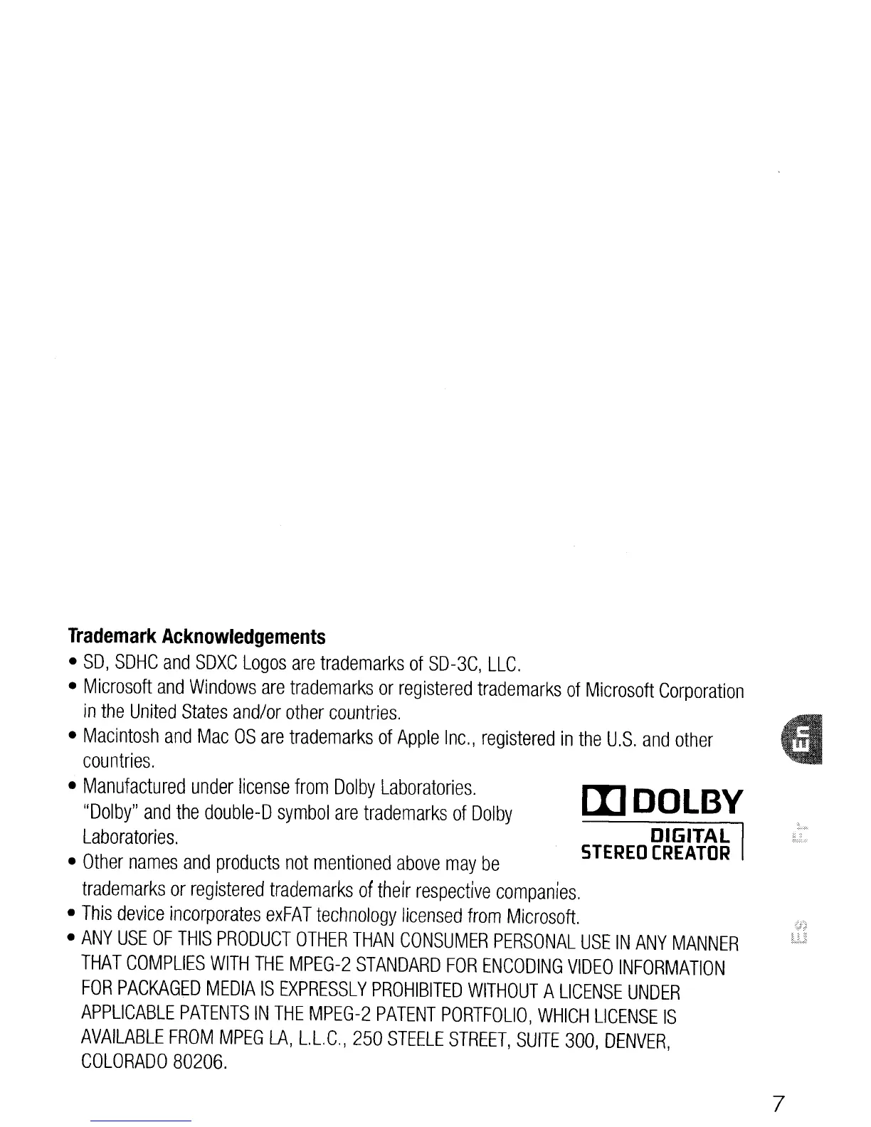 Canon FS400 - Trademark Acknowledgements