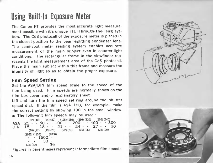 Canon FT QL - Using Built-In Exposure Meter; Film Speed Setting