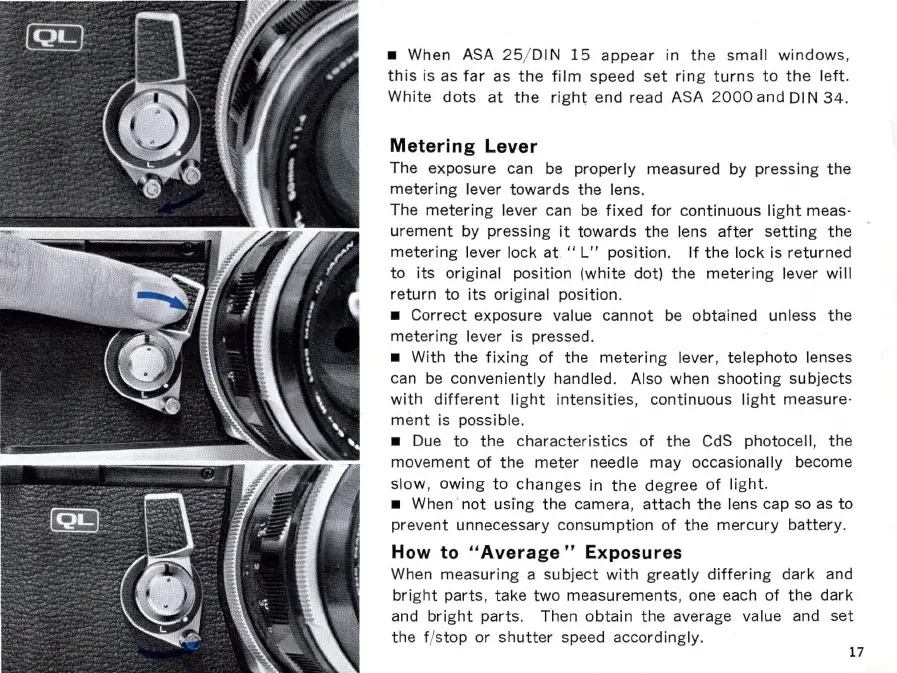 Canon FT - Metering Lever Operation; Exposure Averaging Technique