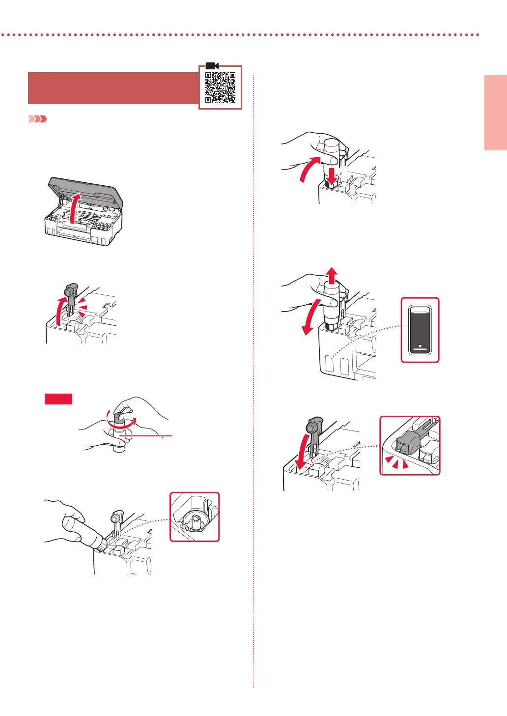If the ink does not pour, gently remove the ink bottle