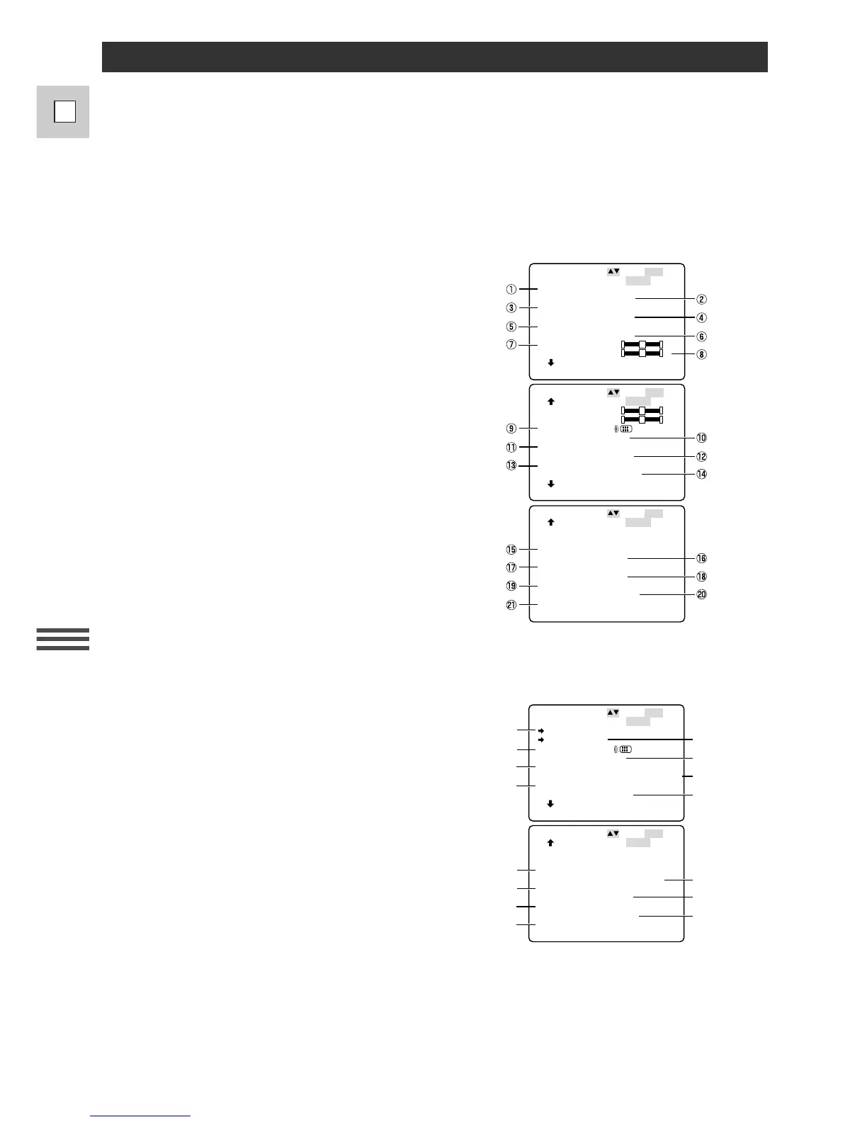 2. VCR menu (when the camera is in VCR mode: the POWER switch is set to VCR)