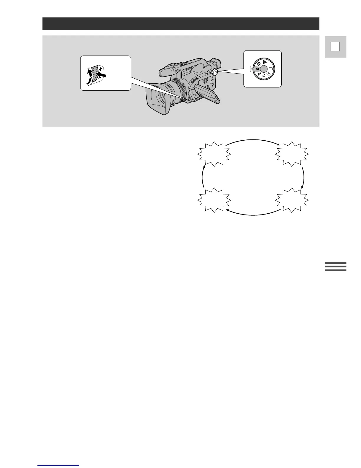• The shutter speed, F number and gain values are all reset if you slide the POWER switch to OFF. If you
