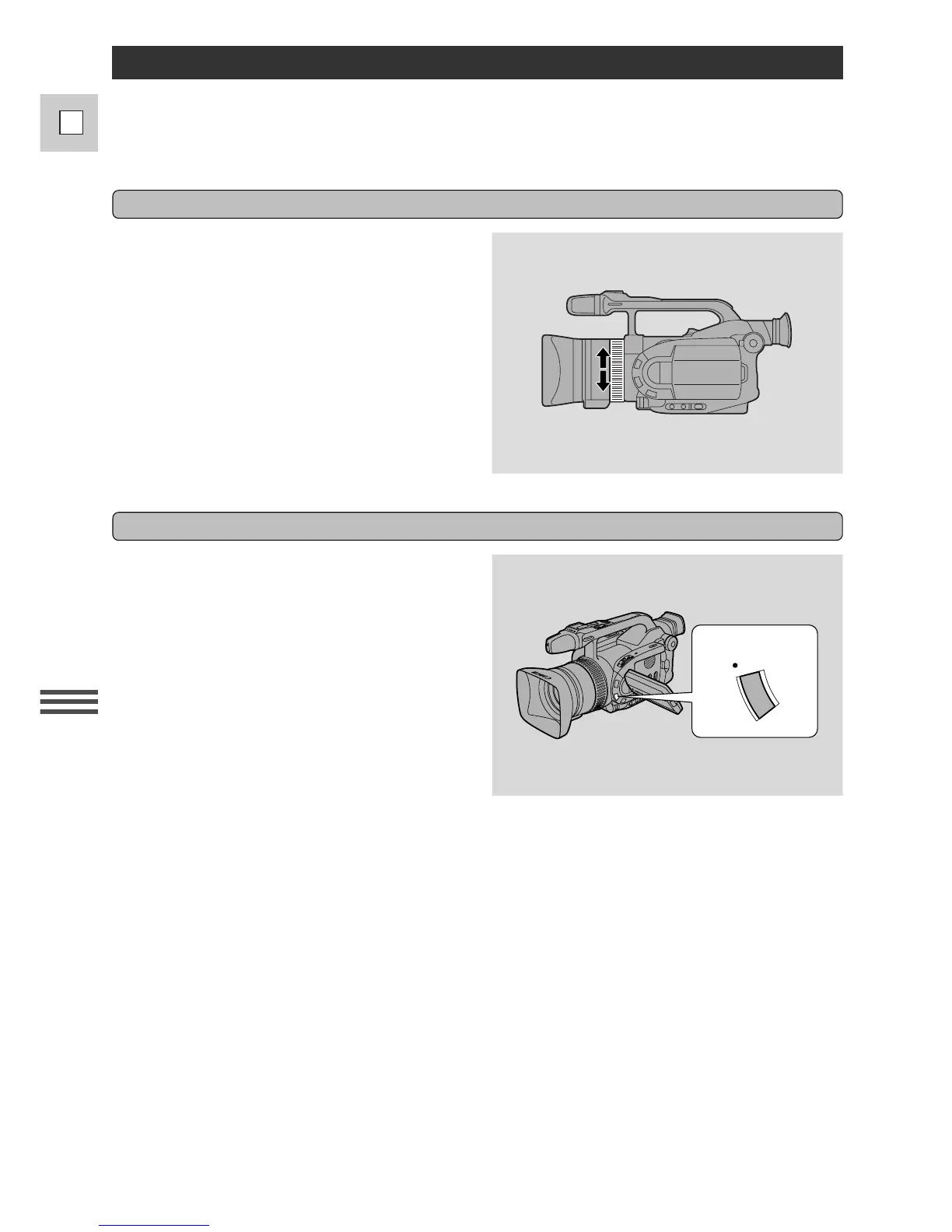 • When zooming during manual focus, zoom out wide only after setting the focus at the telephoto end.