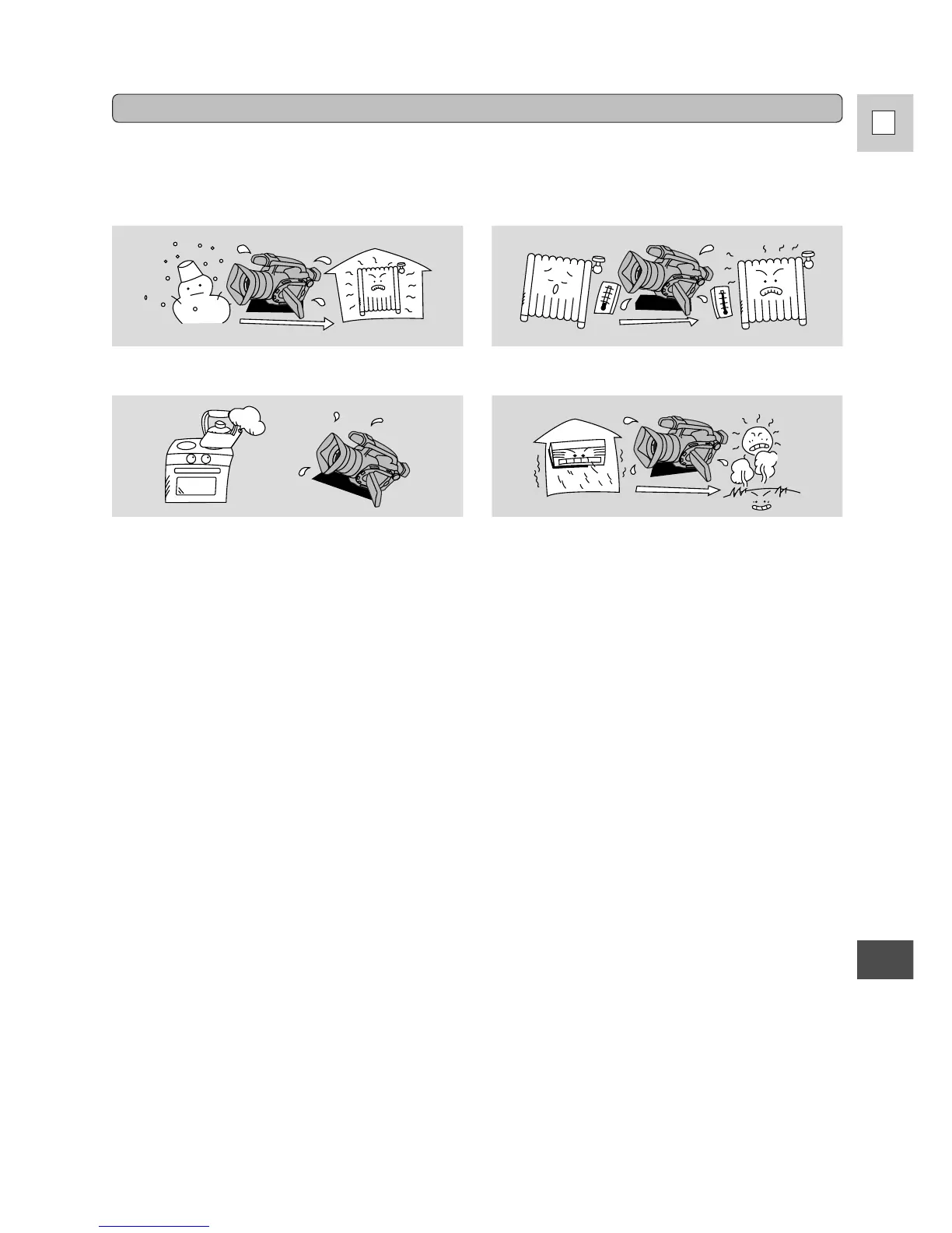 • Before you bring the camera to a warm or humid place where condensation is likely to be a problem,